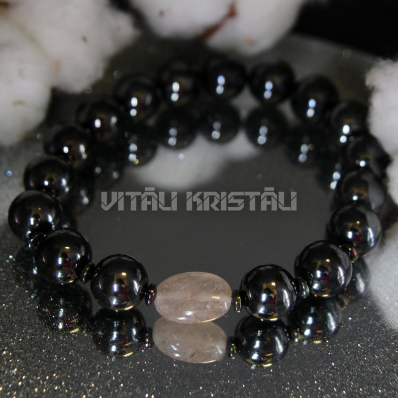 Hematīts 10 mm, kvarcs 14 x 10 mm aproce izmērs 17.5