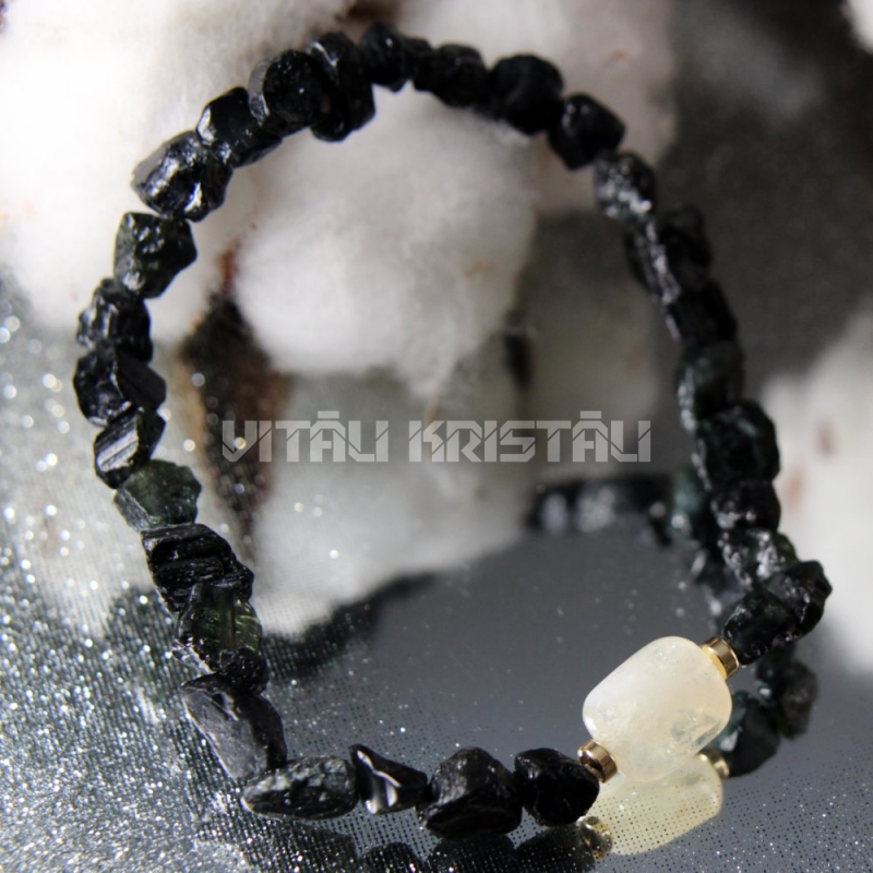 Turmalīns zaļais verdelīts 7-10 mm, citrīns 11 x 8 mm aproce izmērs 16 cm