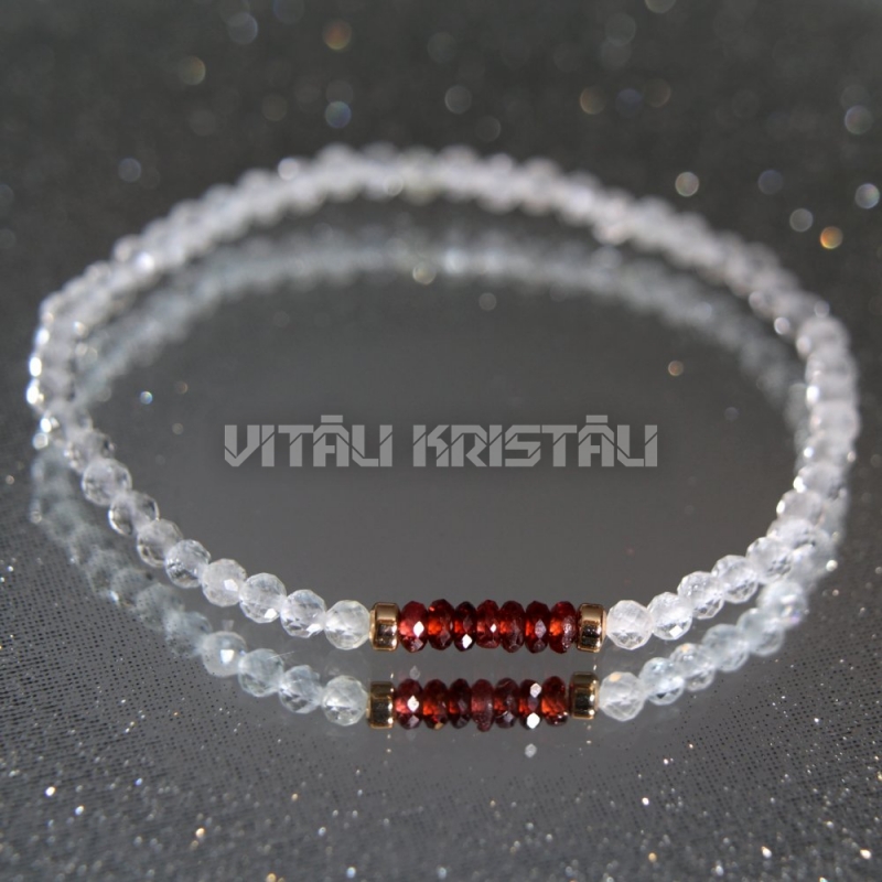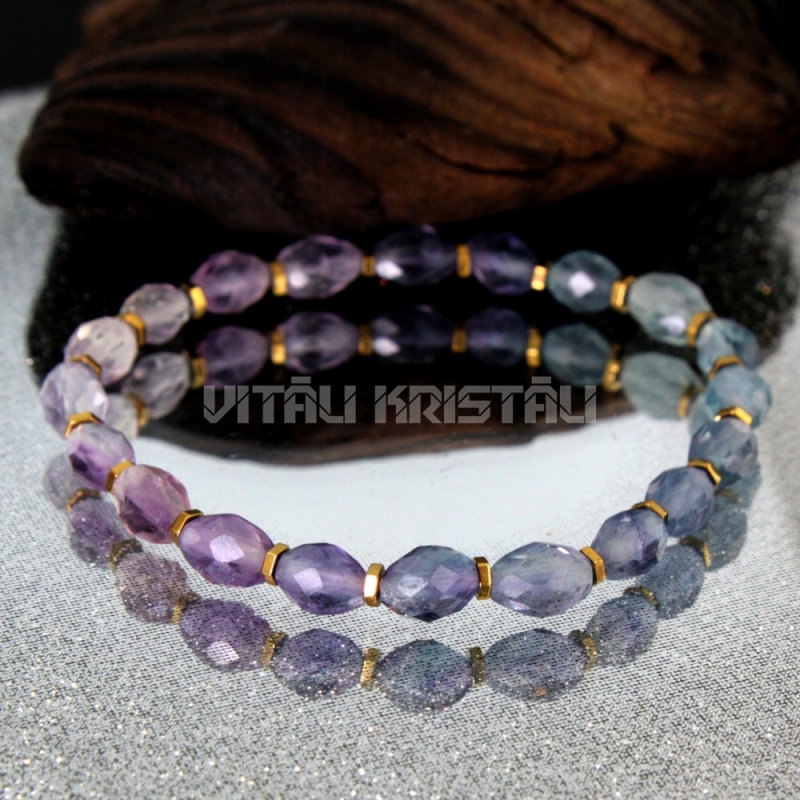 Fluorīts 15 mm, kalnu kristāls 2 mm aproce izmērs 17.5