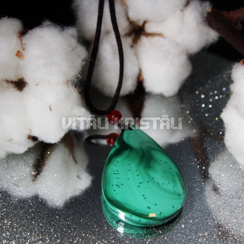 Malahīts kulons 4.8 x 3 cm ar pītu aukliņu max 70 cm