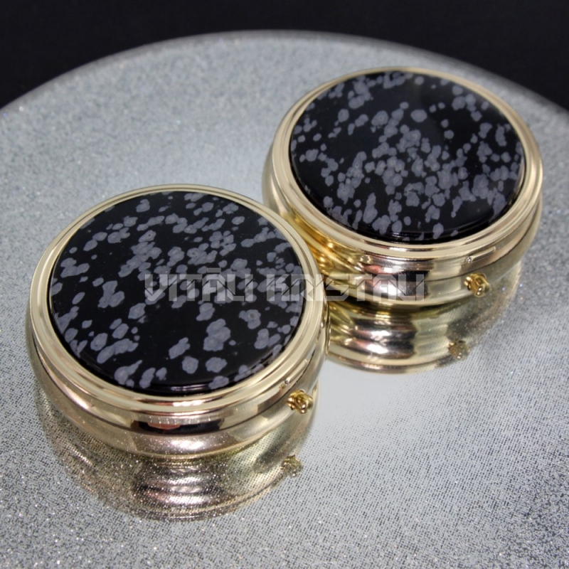 Obsidiāns sniegpārslu tablešu kastīte apaļa 5 cm