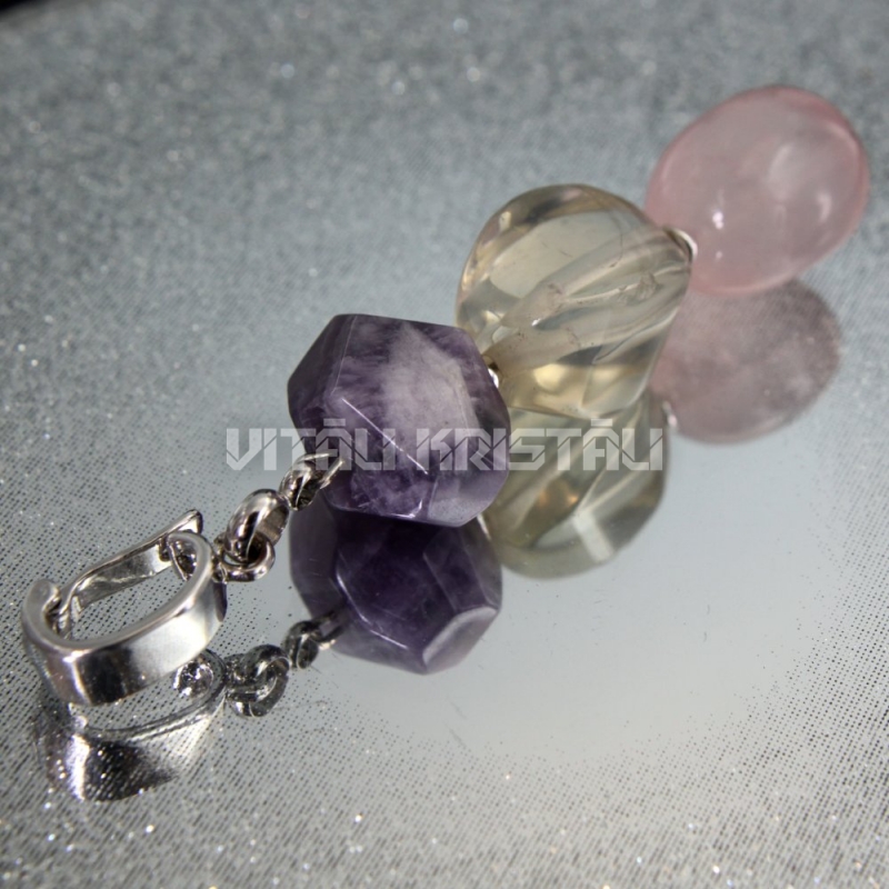 Rozā kvarcs, citrīns, ametists atslēgu piekariņš 8 x 1.8 cm 1 gb