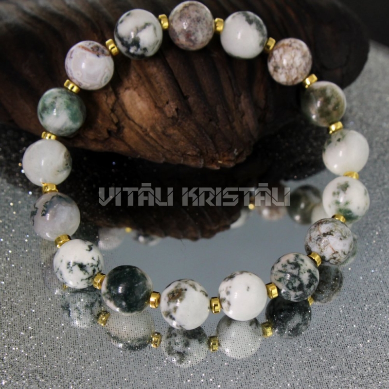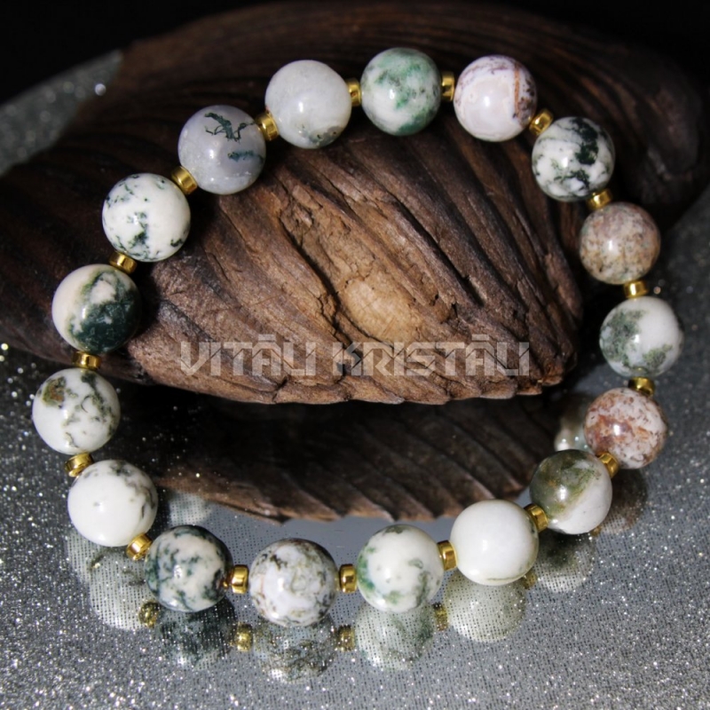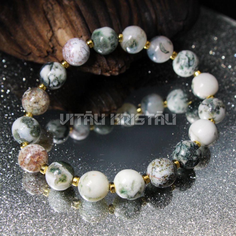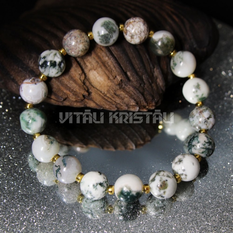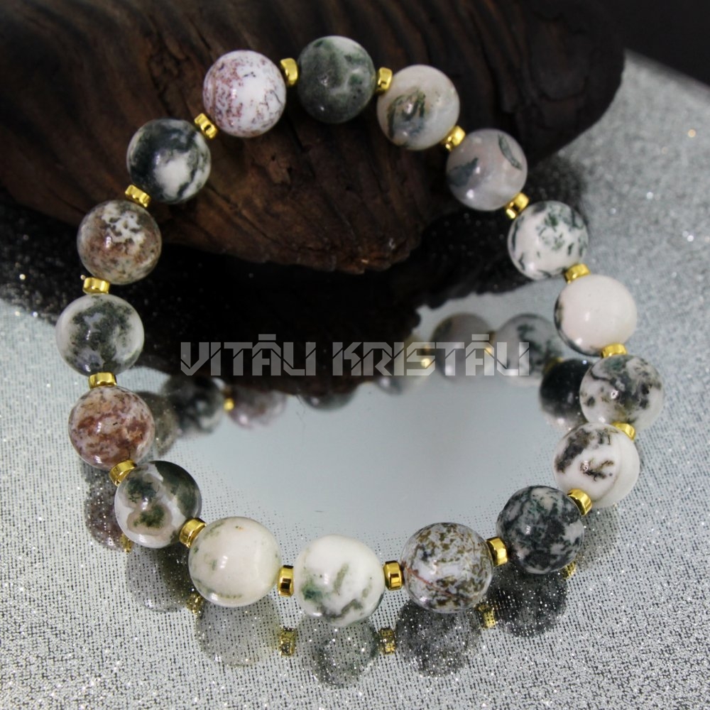Агат моховой 10 мм браслет размер 17