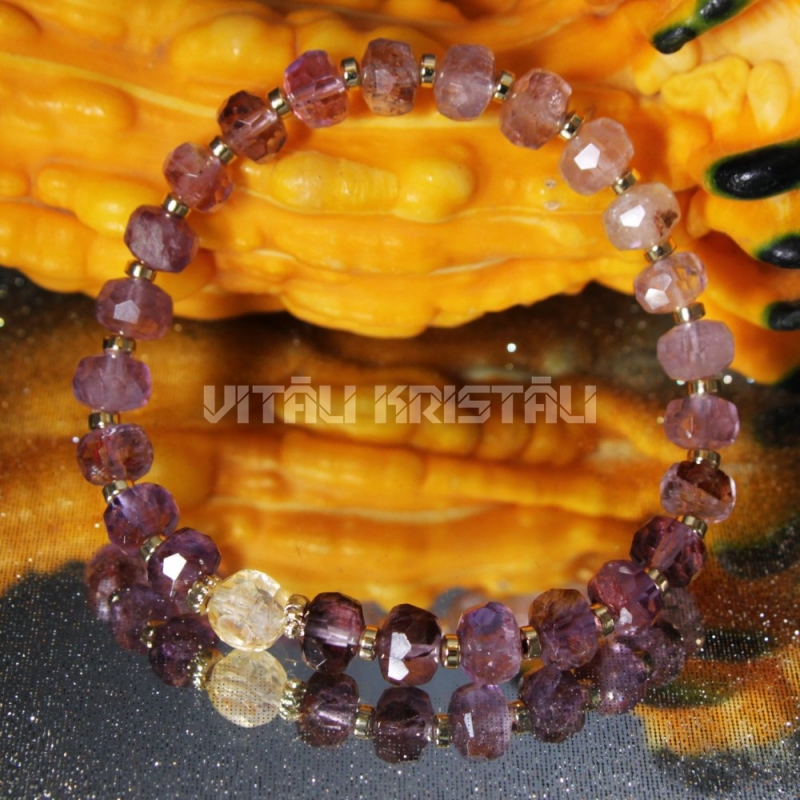 Аметист "super 7" 6 x 8 мм, цитрин 7 мм браслет размер 16