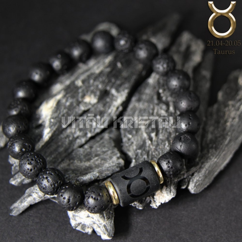 Лава 8 мм, оникс 18 x 12 мм, браслет Телец, размер 17