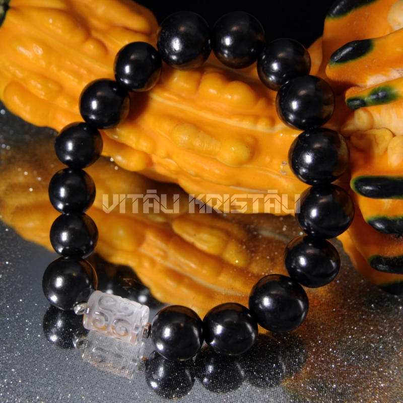 Шунгит 12 мм, горный хрусталь 13 x 10 мм браслет размер 17.5