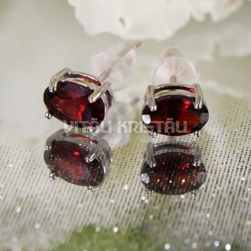 Гранат серьги гвоздики серебро 7 x 5 мм