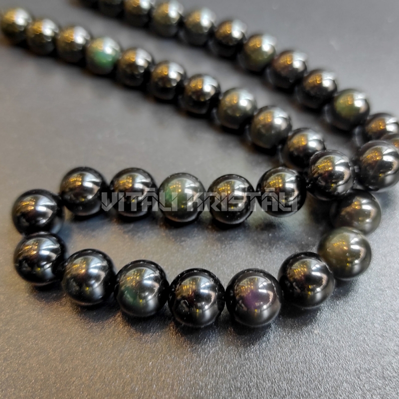 Обсидиан радужный бусины 10 мм нить 18.5 см