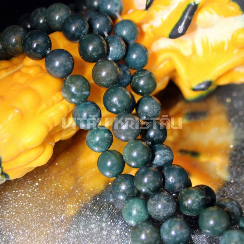 Агат моховой бусины 10 мм нить 19 см