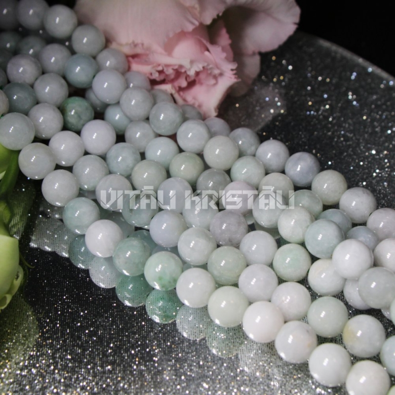 Жад светло голубой, зеленый Бурма бусины 8 мм нить 19.5 см