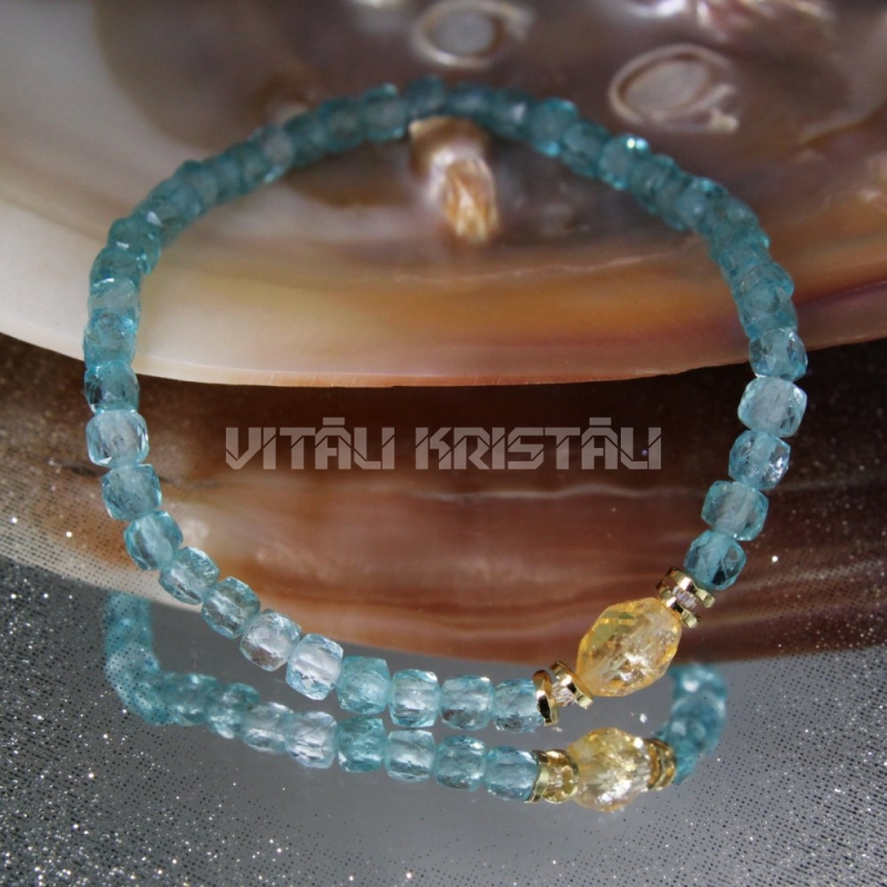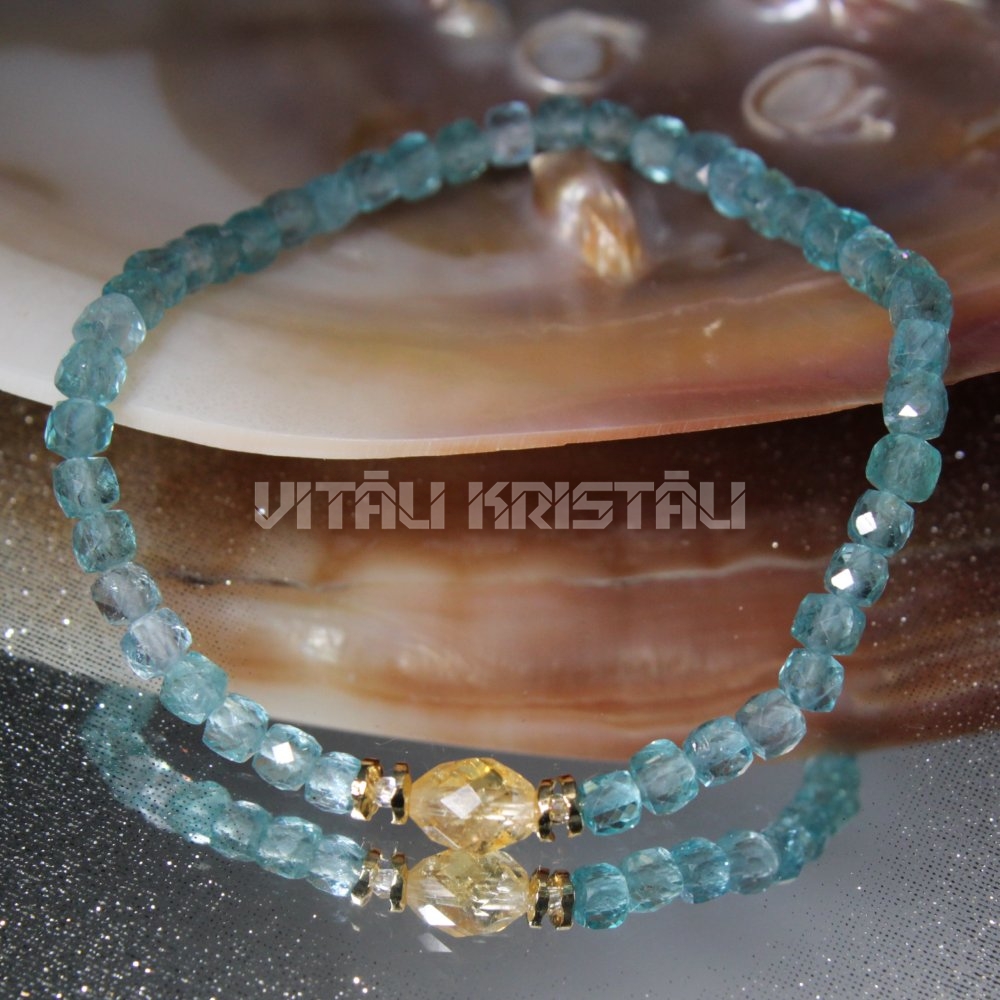Цитрин 8 x 6 мм, апатит 4 мм браслет размер 17