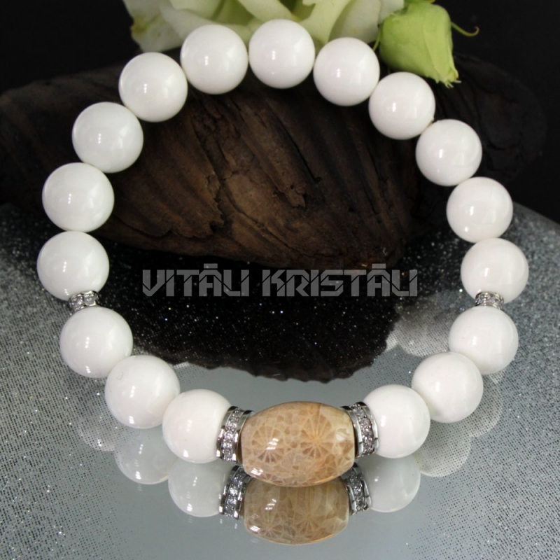 Тридакна 10.5 мм, коралл окаменелый 15 x 10 мм браслет размер 17