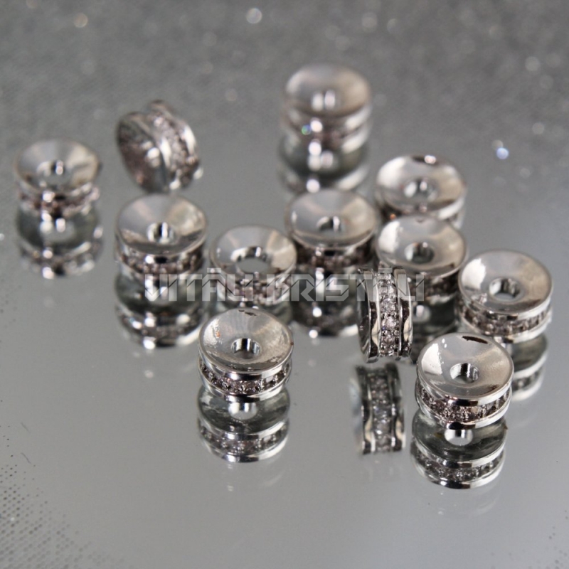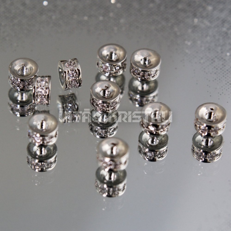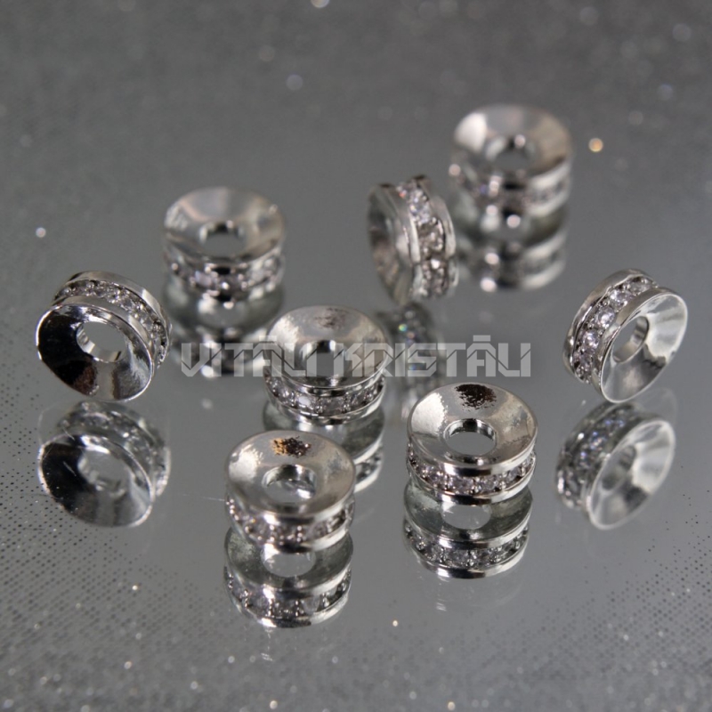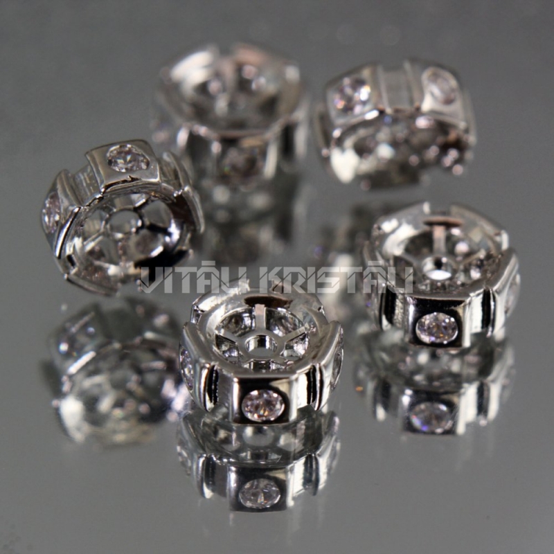 Разделитель серебряного цвета с прозрачными кристаллами 7 x 3 мм 1 шт