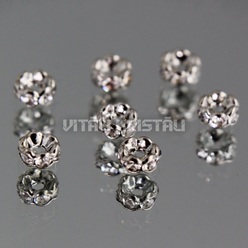 Разделитель серебряного цвета с прозрачными кристаллами 8 x 3.5 мм 1 шт