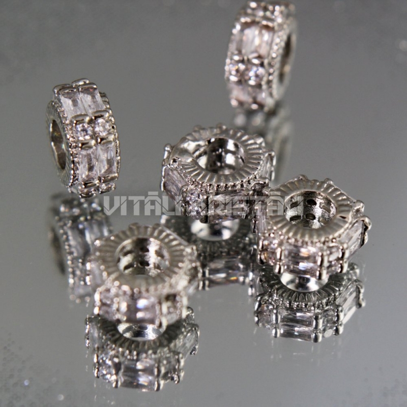 Разделитель с синтетическими цирконами 8 x 3 мм серебристый цвет покрытие родий 1 шт.