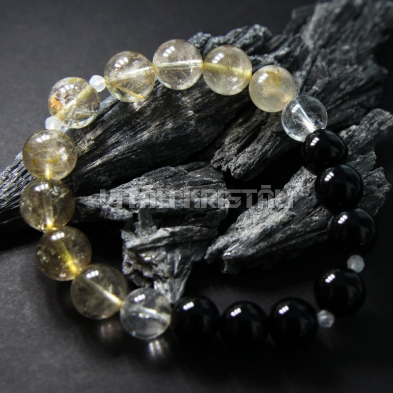 Рутиловый кварц, оникс 10 мм браслет размер 17
