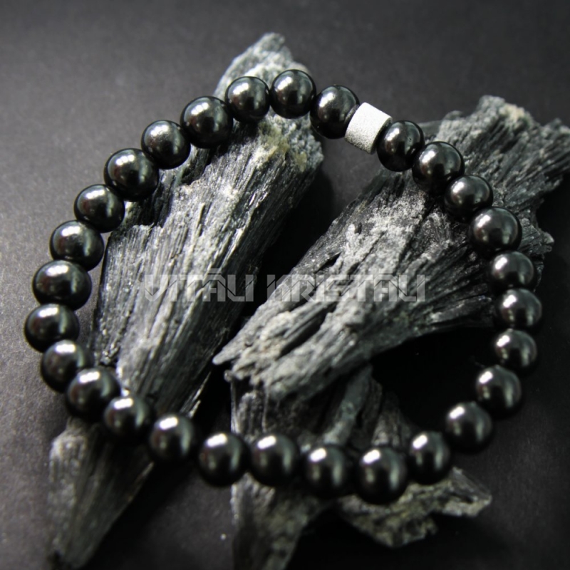 Шунгит 6 мм, серебро браслет размер 16