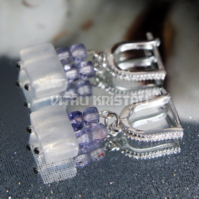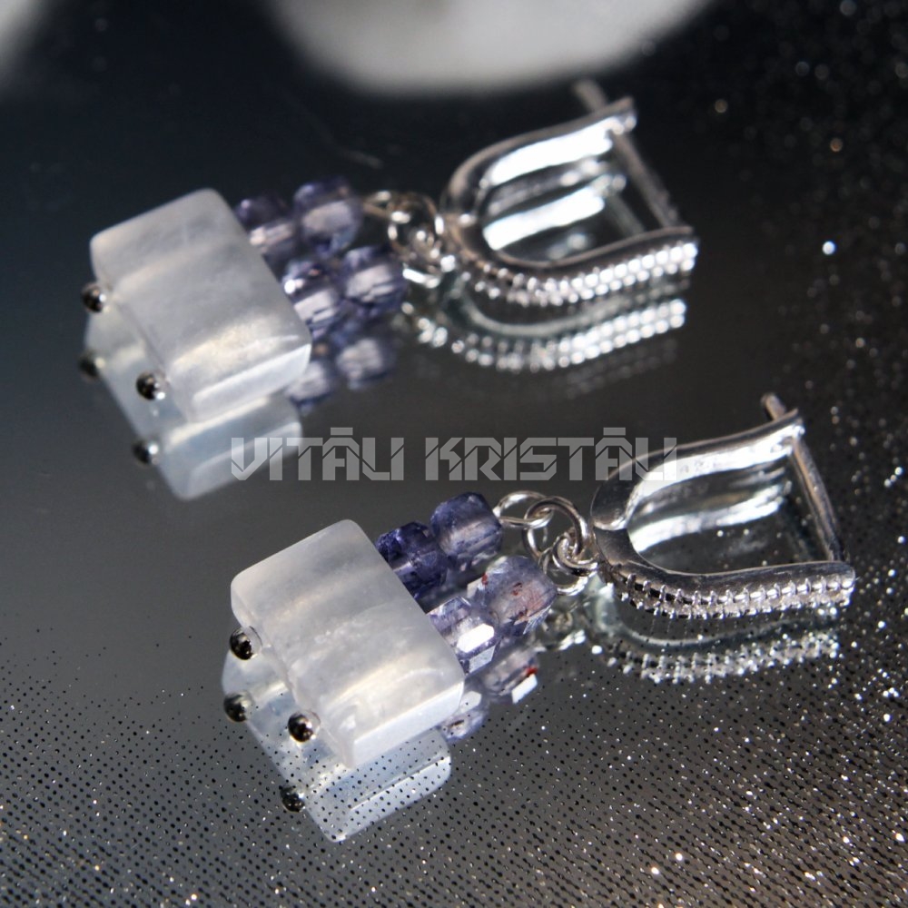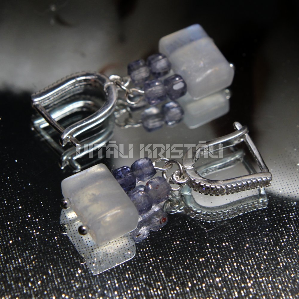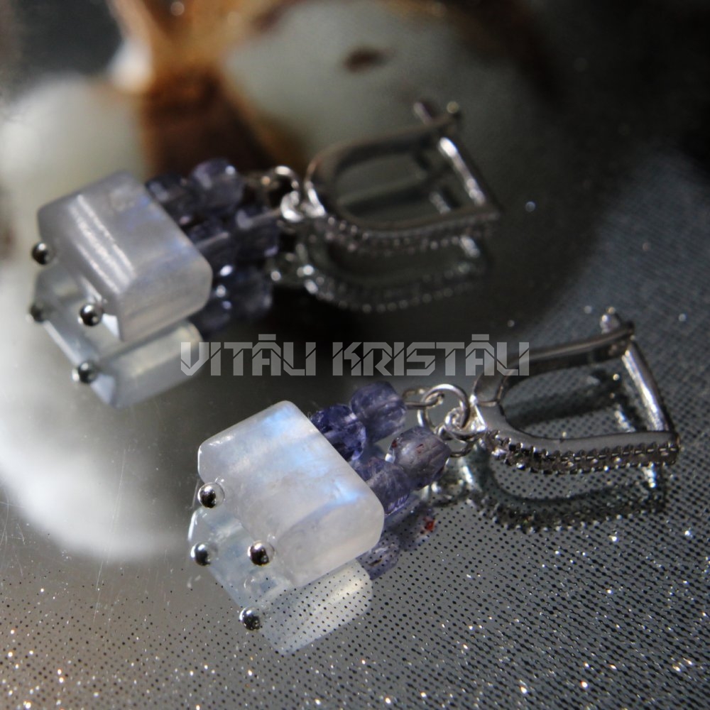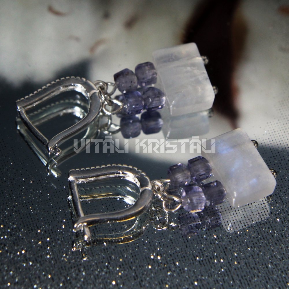 Лунный камень, Иолит серьги серебро 3 x 1 см