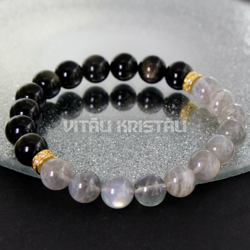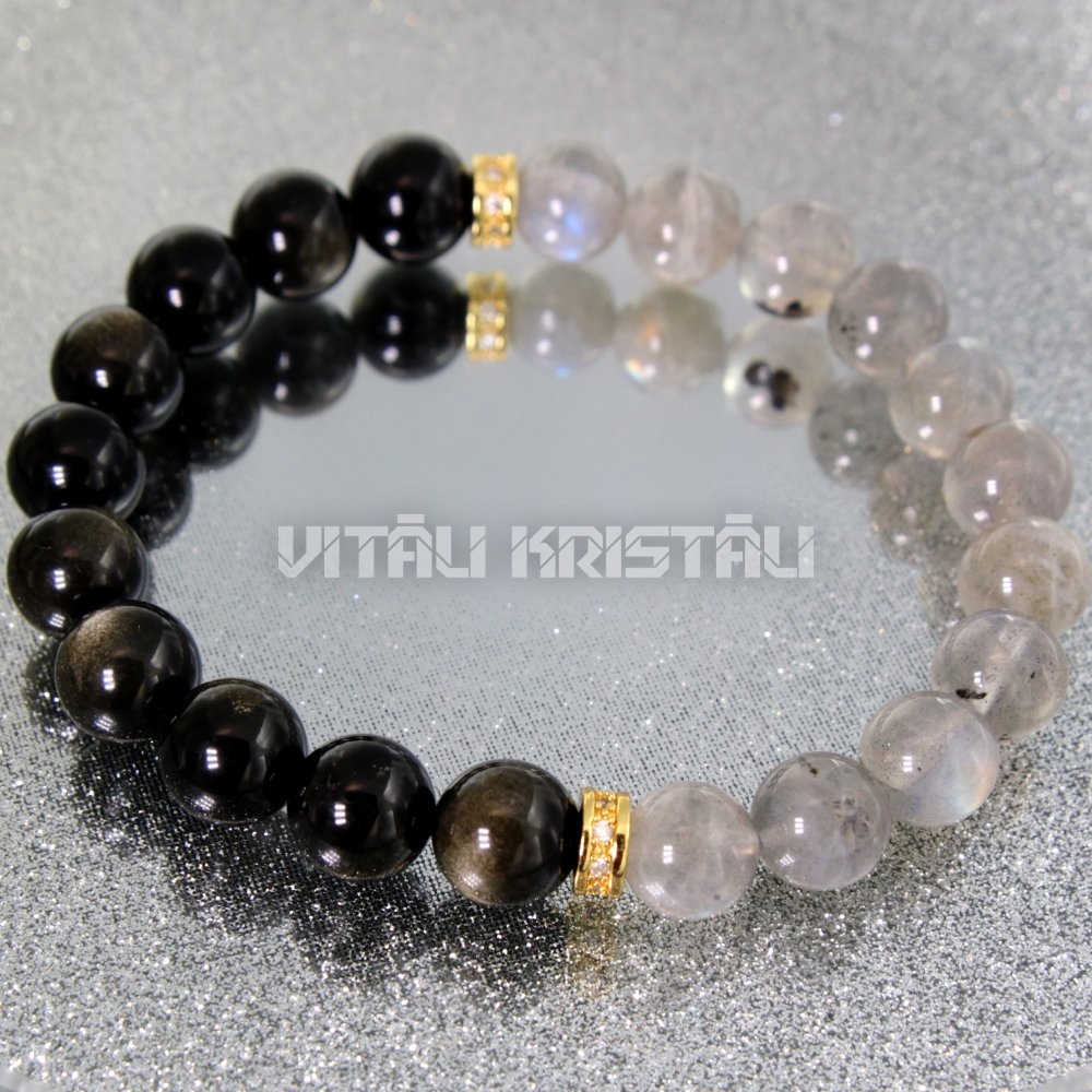 Обсидиан золотой, лабрадорит 10 мм браслет размер 18