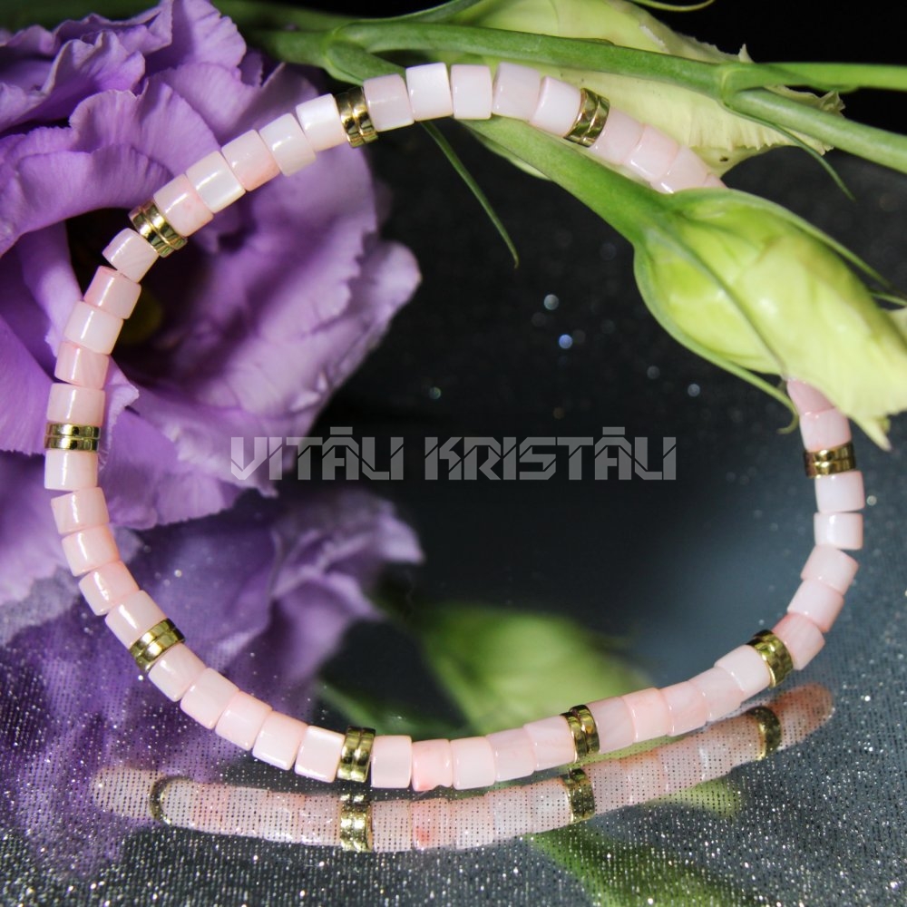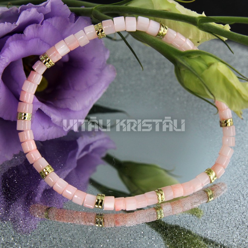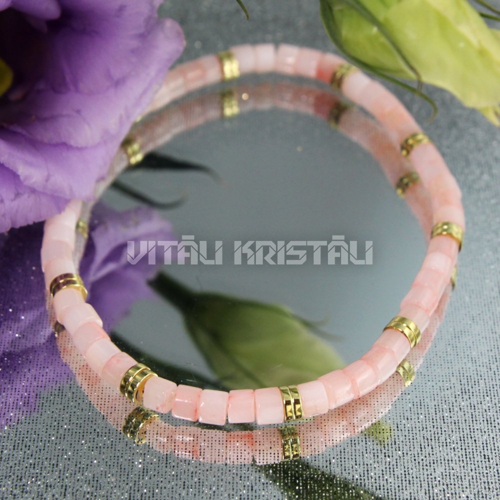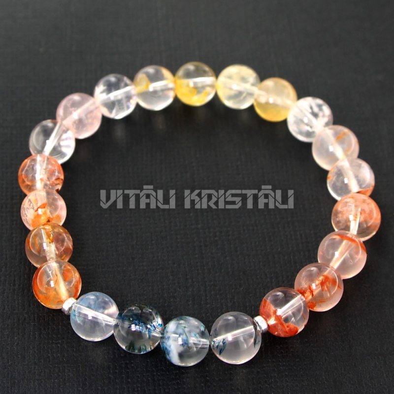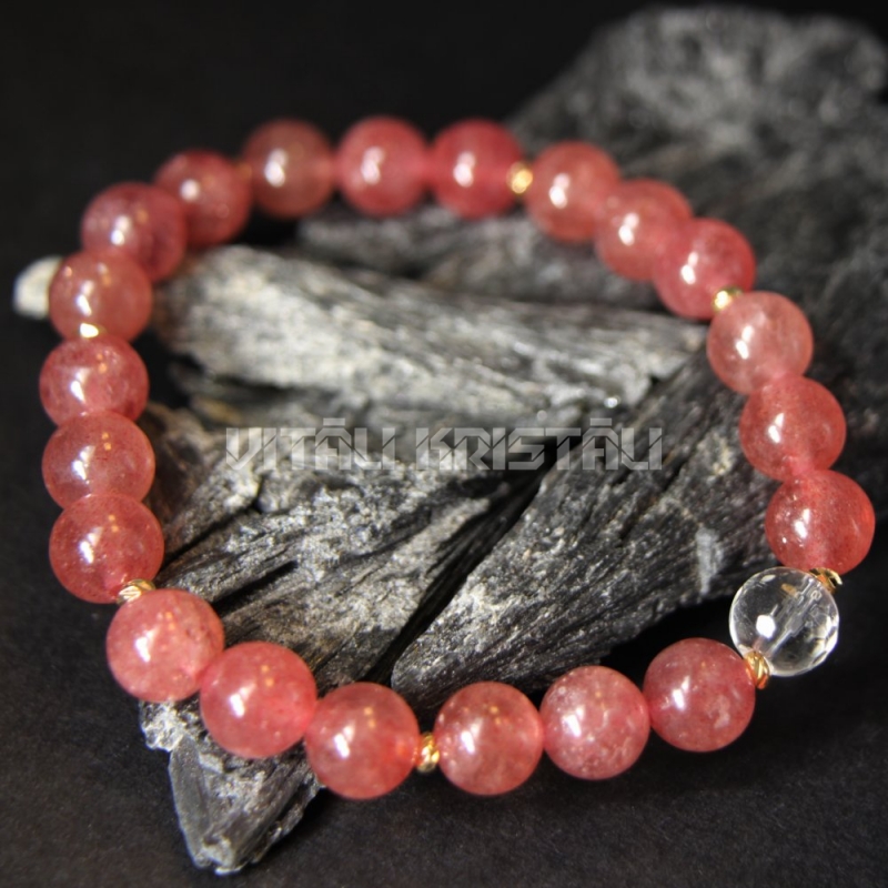 Земляничный кварц, горный хрусталь 8 мм браслет размер 16