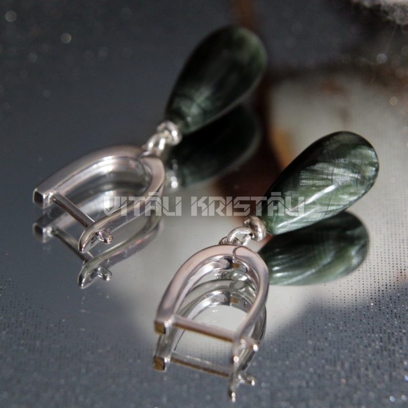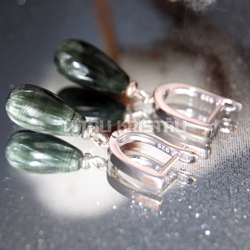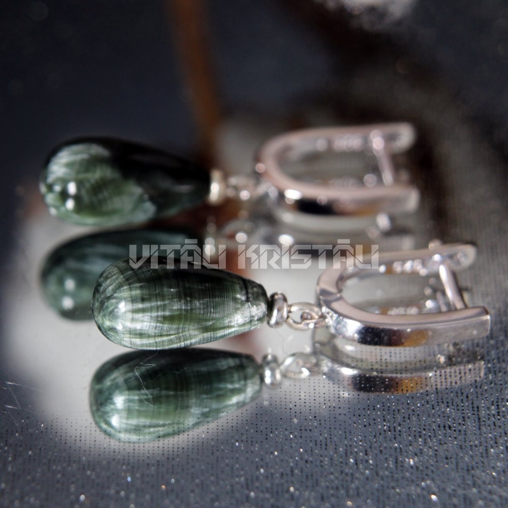 Серафинит серьги серебро 3.5 x 0.8 см