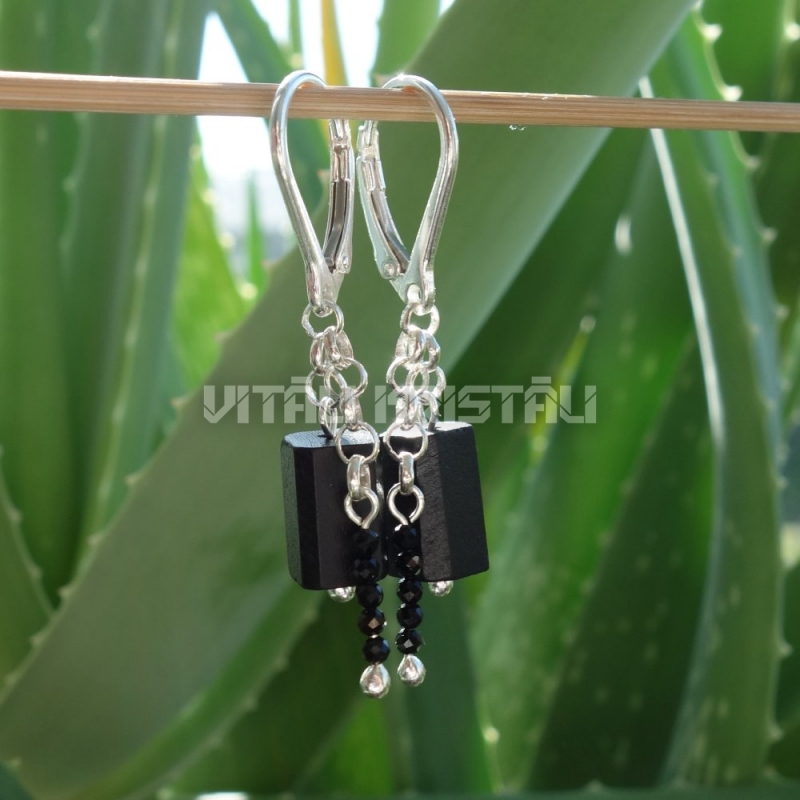 Турмалин черный шерл и шпинель серьги сербро 4 см x 0.8 см