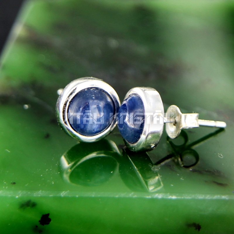 Кианит серьги гвоздики 8 мм серебро