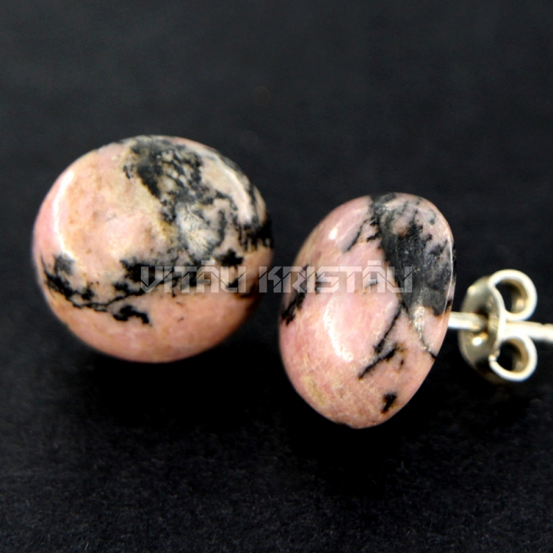 Родонит серьги гвоздики 12 мм серебро