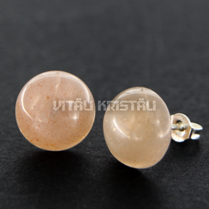 Лунный камень персиковый серьги гвоздики 12 мм серебро