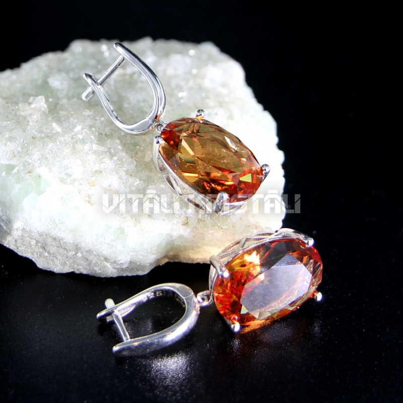 Султанит искуственно выращенный серьги серебро 3 см