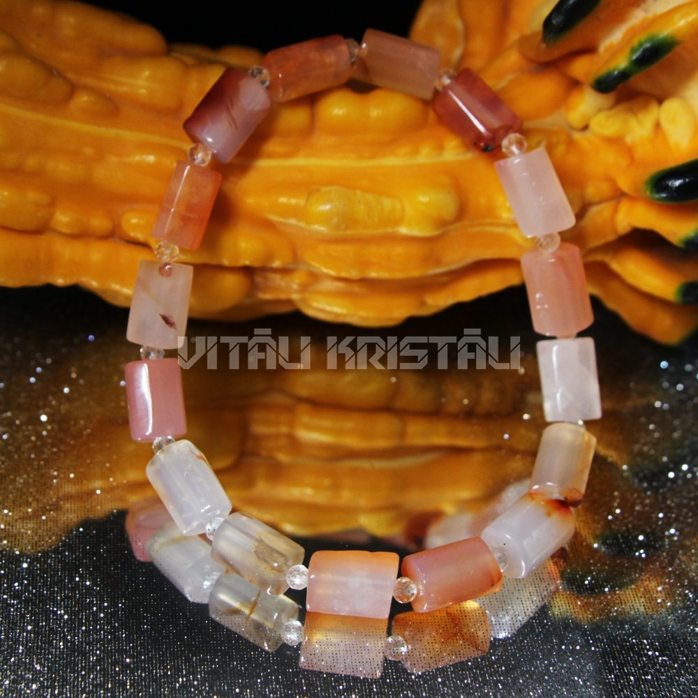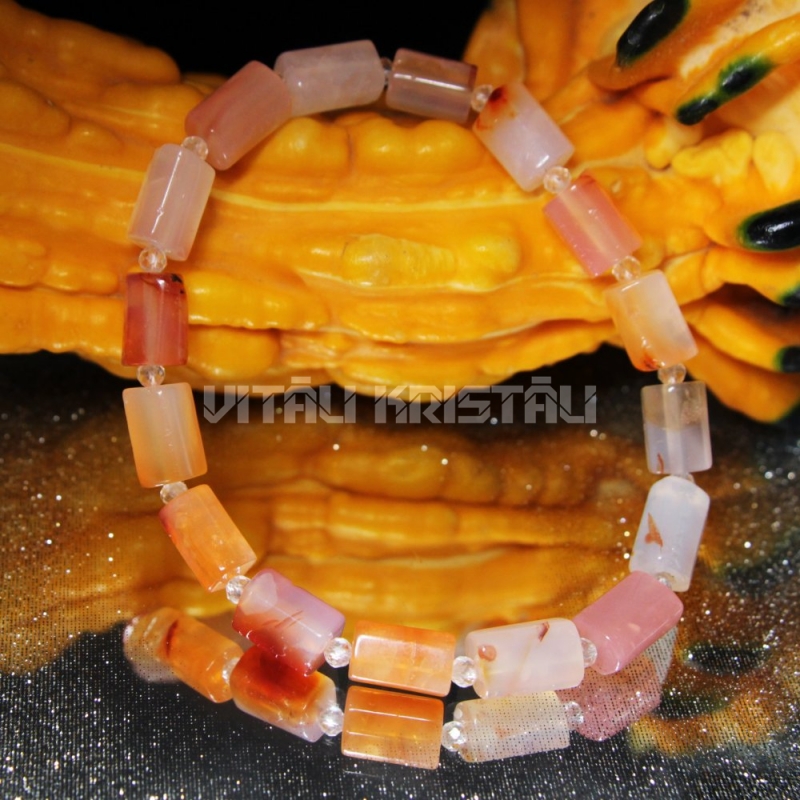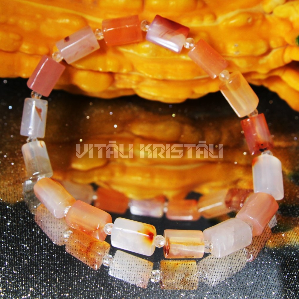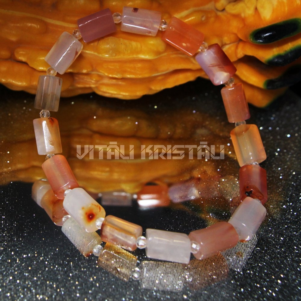 Сердолик 10 x 6 мм, горный хрусталь 2 мм браслет размер 18