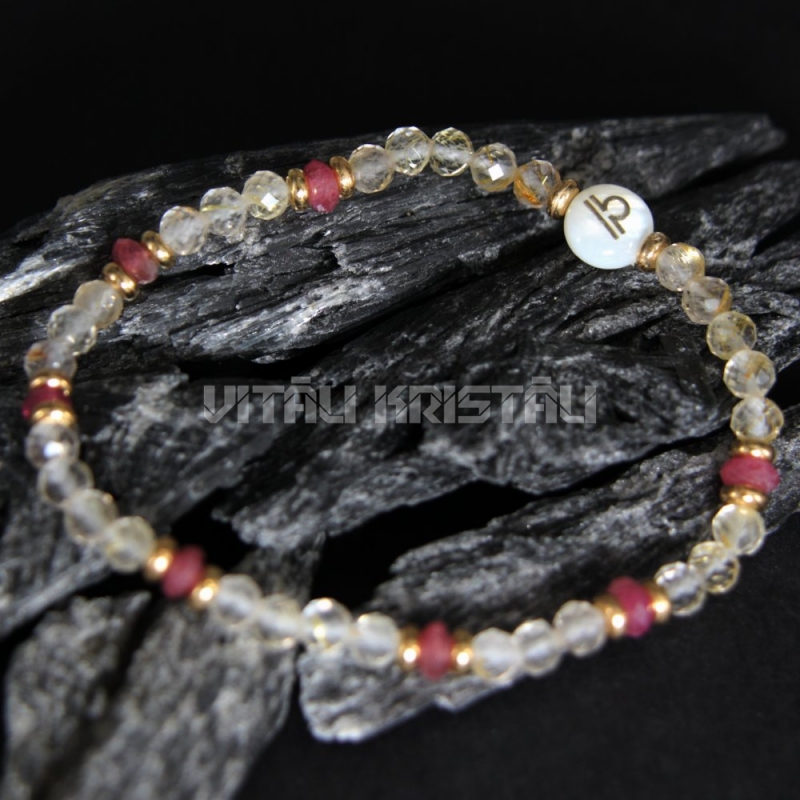 Рутиловый кварц, турмалин рубеллит 4 мм, перламутр 8 x 4 браслет "Весы" размер 16