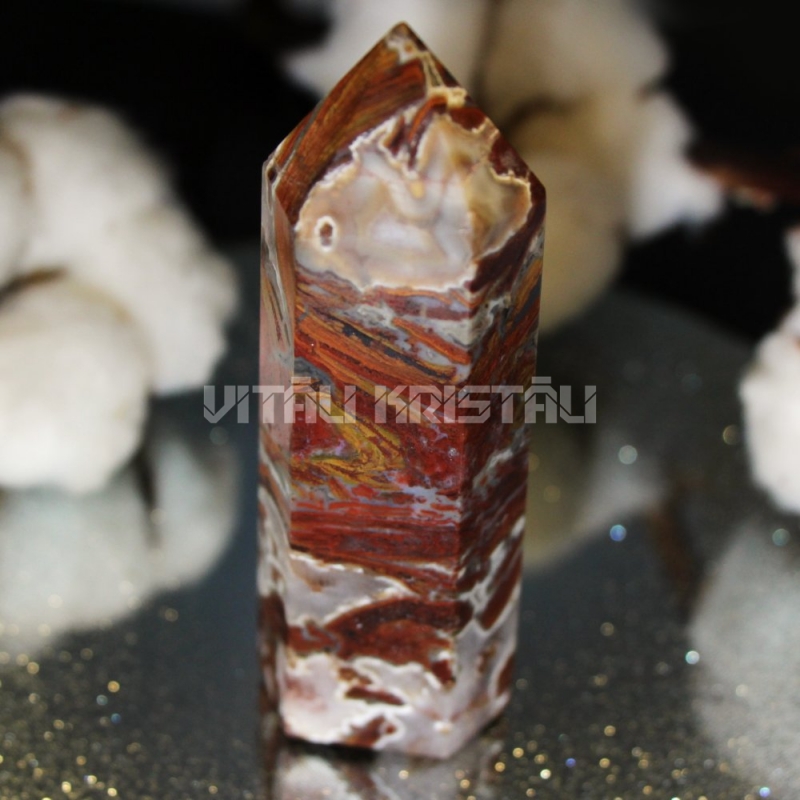 Агат мексиканский кружевной Crazy Lace обелиск 8 x 3 x 2 см