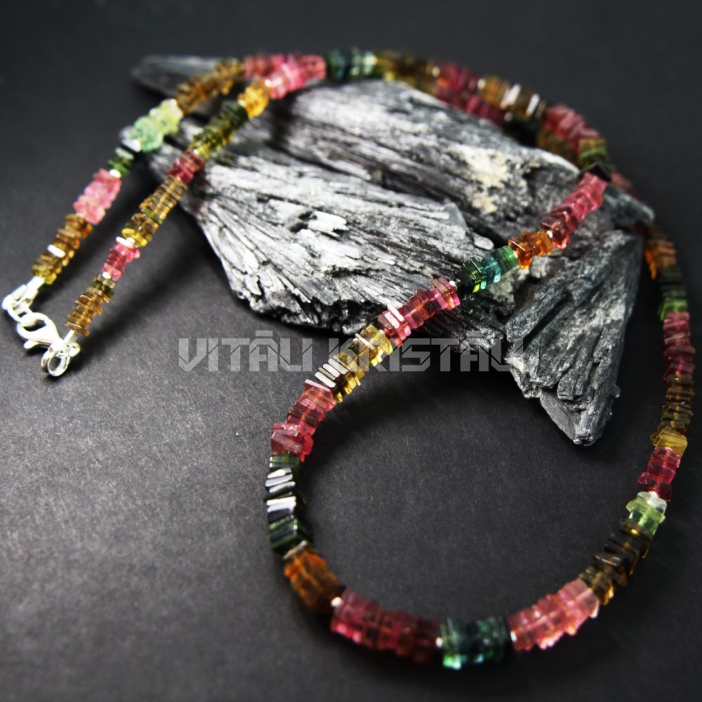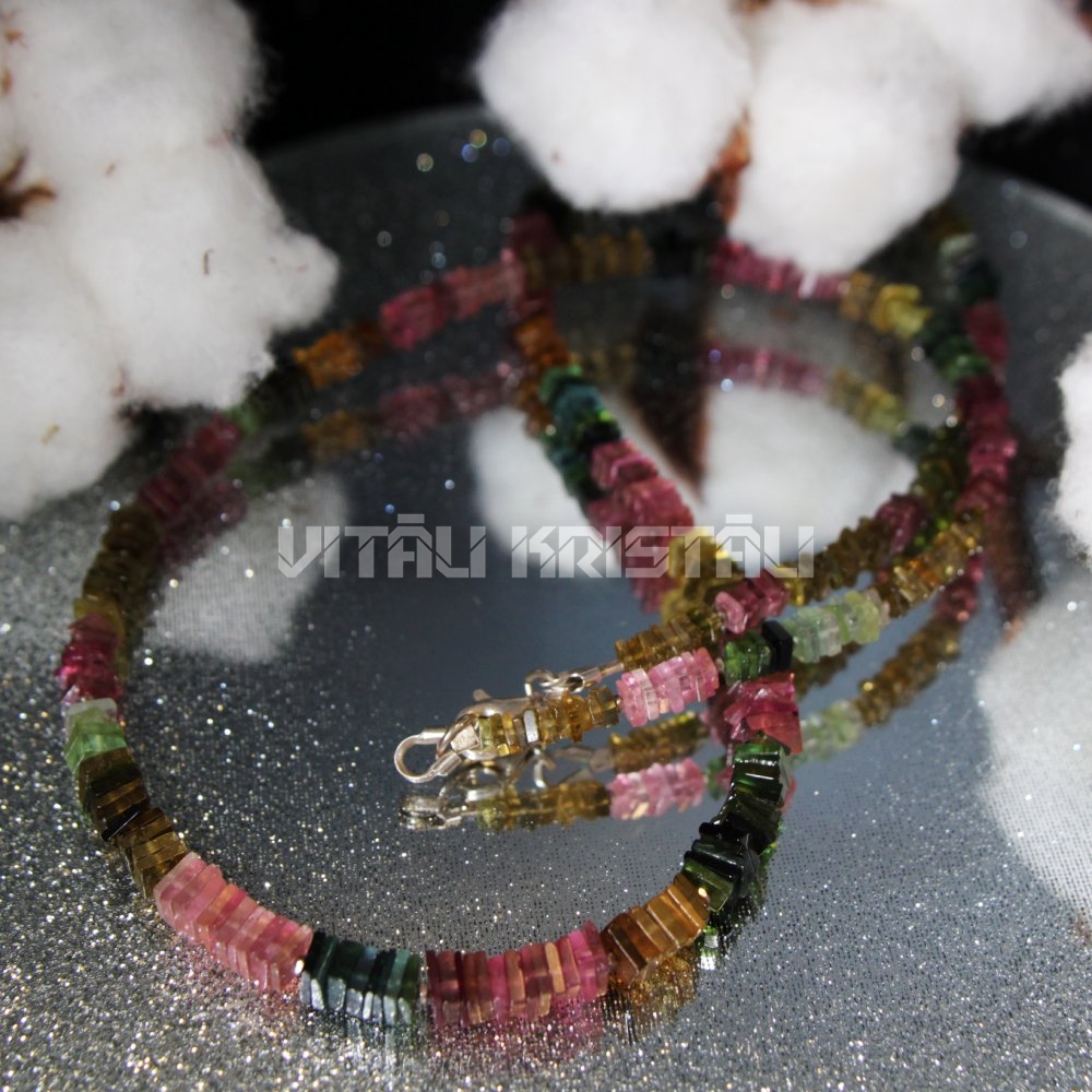 Турмалин 4-5 мм ожерелье серебро 51 см