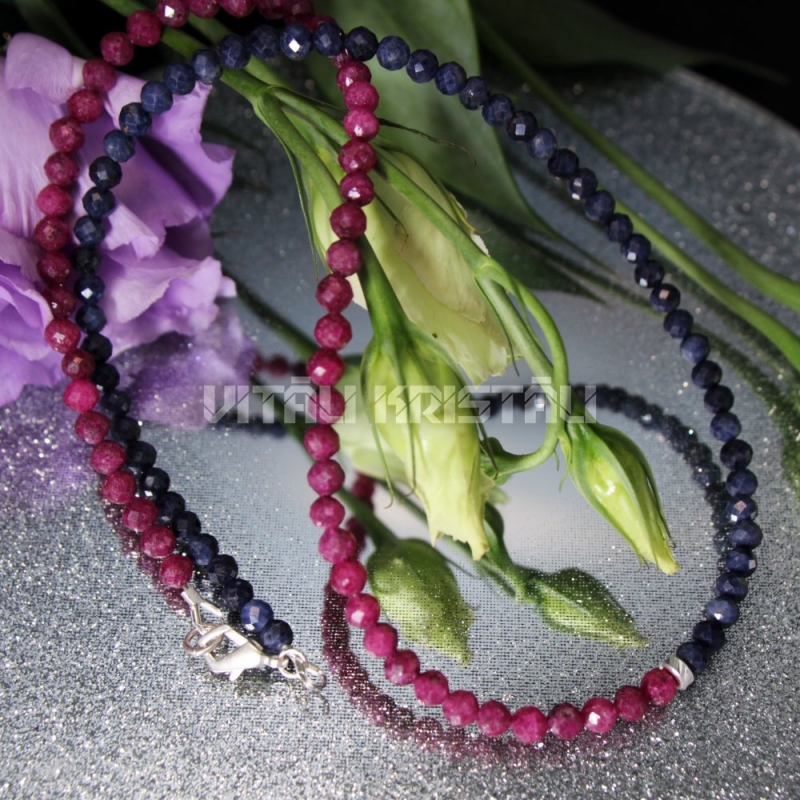 Сапфир, рубин 4 мм ожерелье серебро 45 см