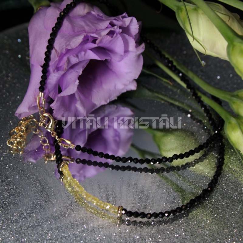 Турмалин черный шерл 2 мм, сапфир желтый 3 мм бусы 44+5 см