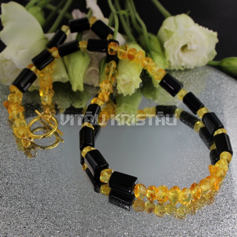 Янтарь 5 мм, турмалин черный шерл 6 x 10 мм бусы 42 см