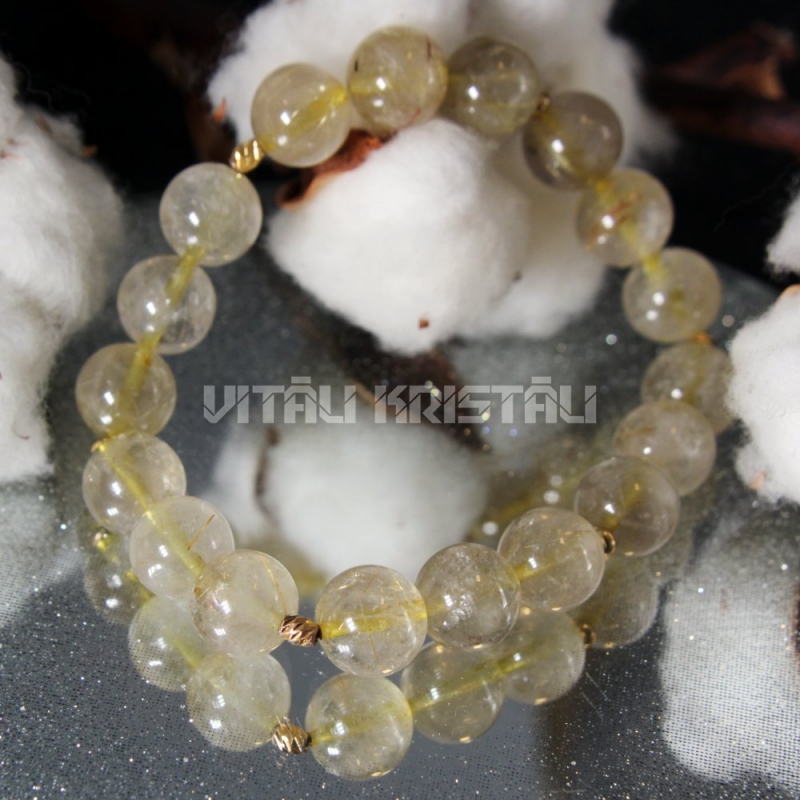 Рутиловый кварц 10 мм браслет размер 18