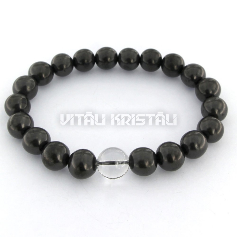 Шунгит 10 мм и горный хрусталь 12 мм браслет размер 17