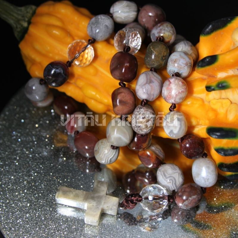 Агат лагуна 10 мм чётки 30 + 3 бусины горного хрусталя, агат crazy lace крест