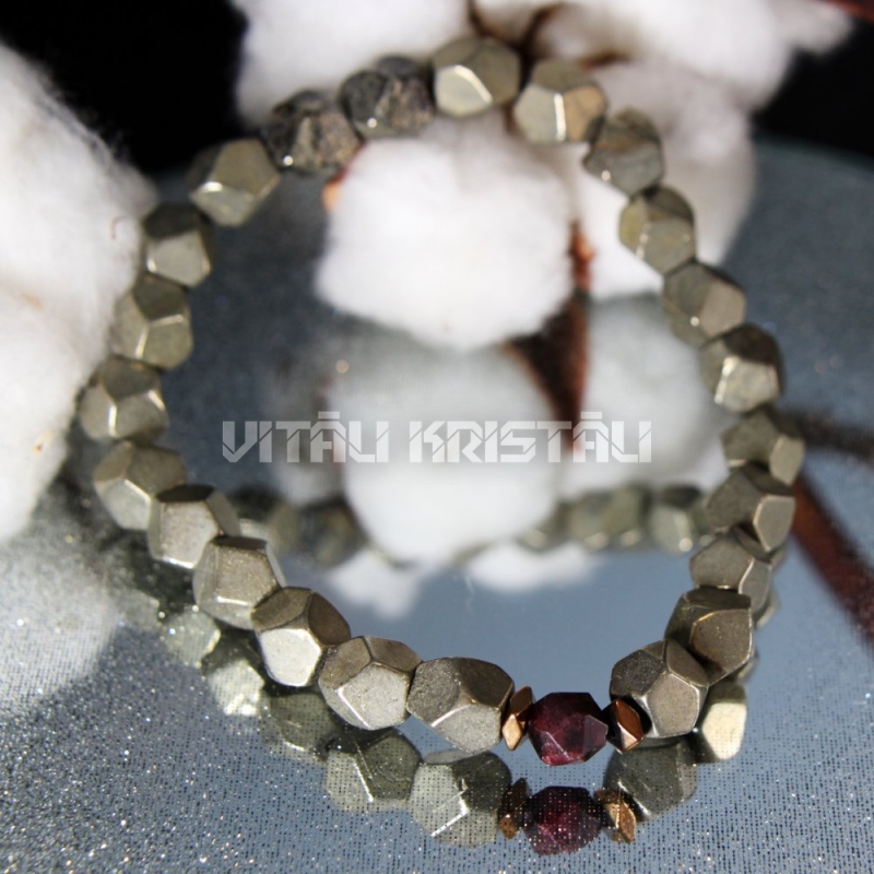 Пирит 8 мм, гранат 6 мм браслет размер 18