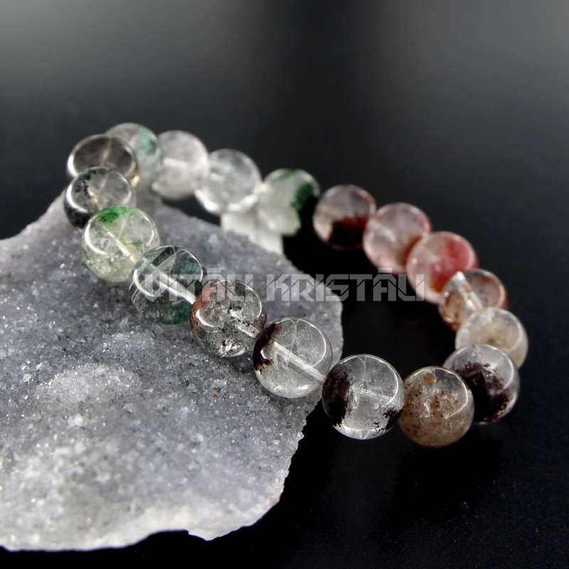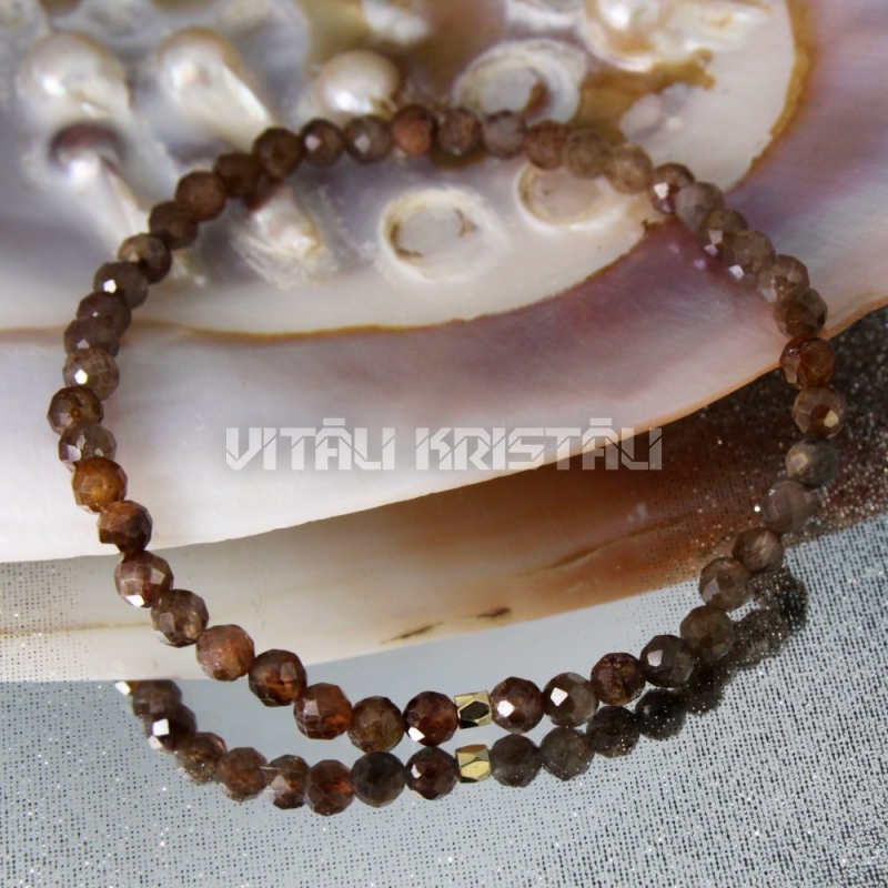 Султанит искусственно выращенный 6 мм, пирит 2 мм браслет размер 15-18