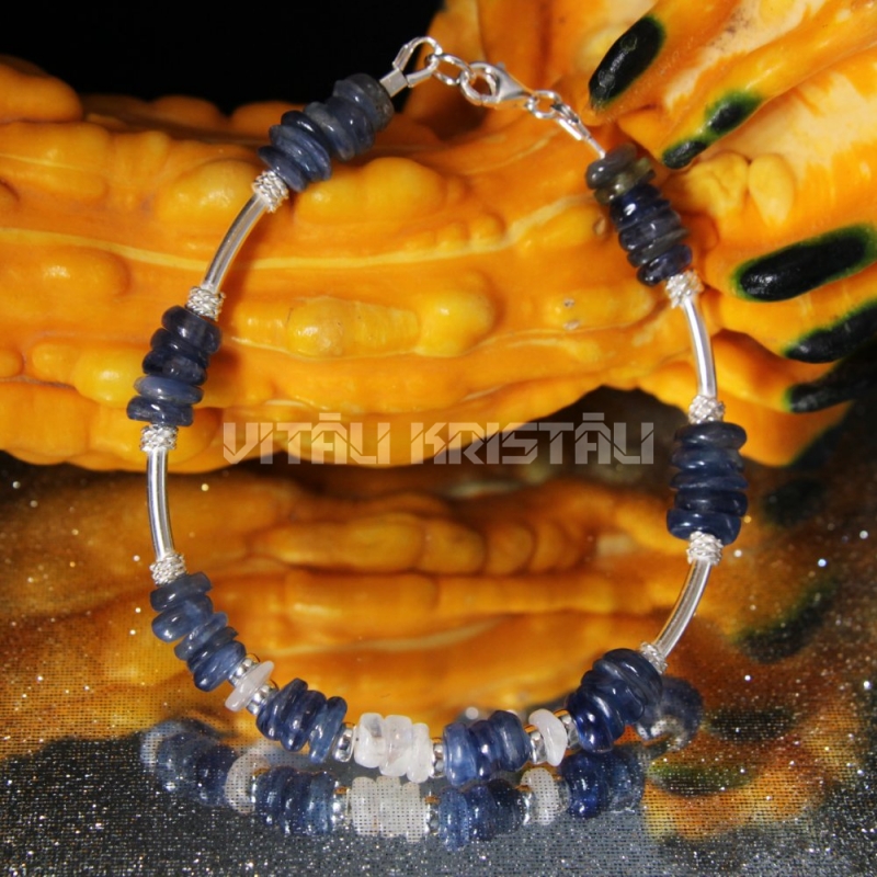 Кианит, лунный камень 2 x 6 мм, серебро браслет размер 16.5